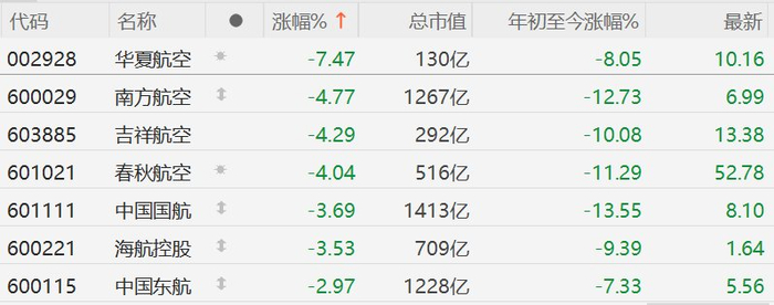 A股异动丨航空股集体下挫,华夏航空跌超7%,春秋航空跌超4%