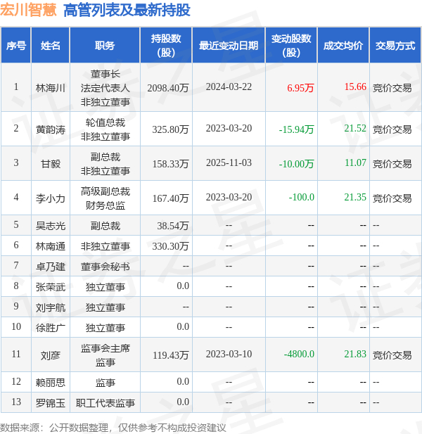宏川智慧近半年内的董监高及核心技术人员增减持详情如下: