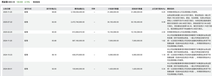 持续失血背景下,上市不到两年,优必选已发起6次配售,募资金额不断走高,连同IPO募资,公司合计募资金额约83亿元,实控人周剑的持股比例降低至23.5%。