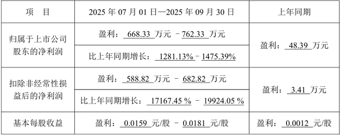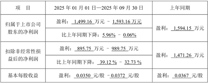 10月13日,天奥电子(002935)发布公告,预计2025年前三季度归母净利润在1499万元至1593万元之间,较上年同期的1594万元下降5.96%至0.06%。前三季度业绩预计详情如下表所示: