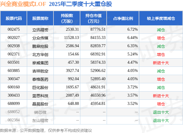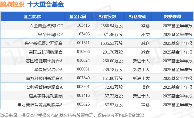 重仓鹏鼎控股的前十大公募基金请见下表: