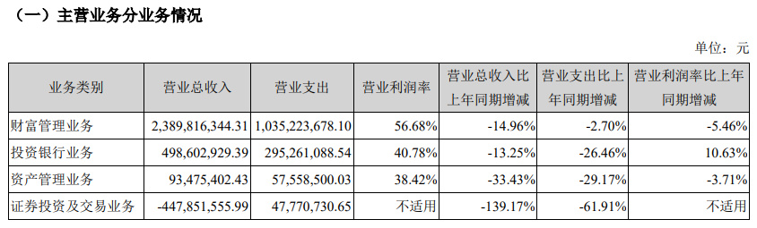长城证券:净利润下降近五成,四大主营业务收入均有下降