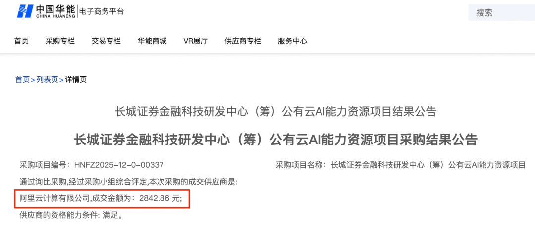 2843 元、长城证券(公有云 AI 能力资源)大单:阿里云(中)