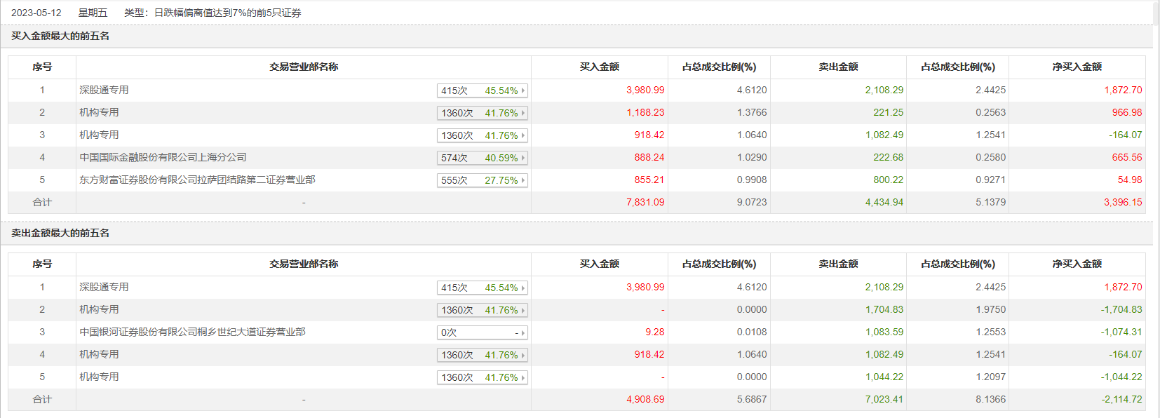 5月12日,新疆交建今日跌停,龙虎榜数据显示,上榜营业部席位全天成交1.61亿元,占当日总成交金额比例为18.66%。其中,买入金额为7840.37万元,卖出金额为8267.57万元,合计净卖出427.2万元。