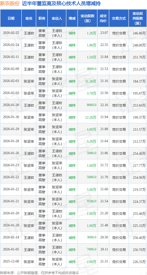 新农股份:2月25日高管王湛钦减持股份合计1.2万股