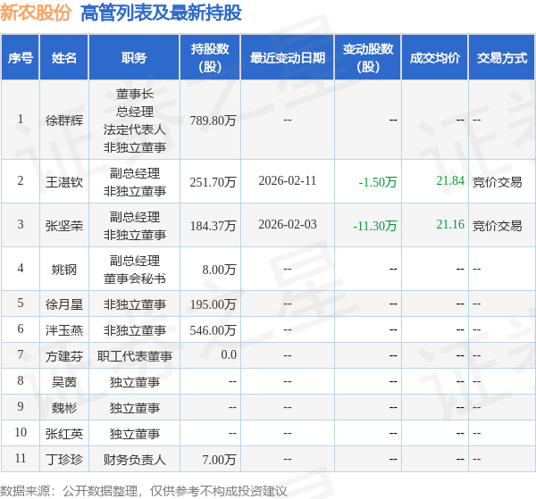 新农股份近半年内的董监高及核心技术人员增减持详情如下: