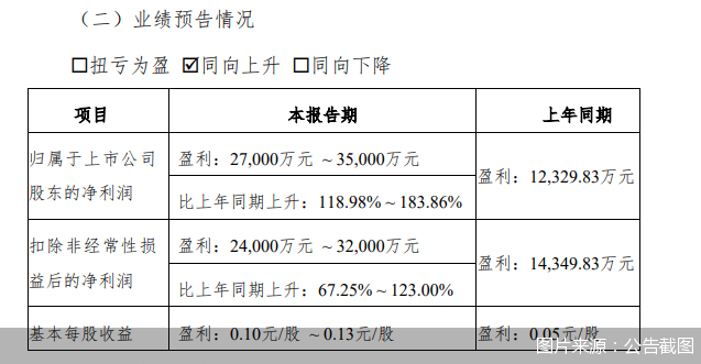 发布2025年半年度业绩预告,上半年预计归母净利润为2.7亿元—3.5亿元,同比增长118.98%—183.86%。