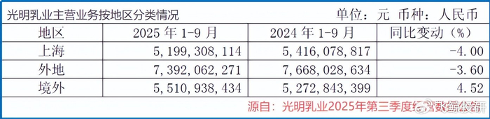 光明乳业上海大本营贡献了52亿元营收,同比下滑4%;中国其他地区74亿元的营收也同比降了3.6%。