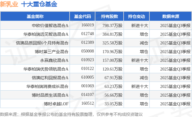 重仓新乳业的前十大公募基金请见下表:
