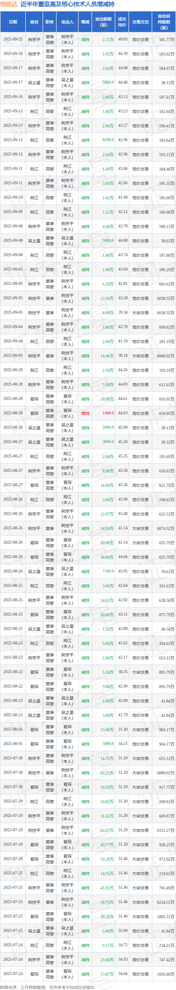 恒铭达近半年内的董监高及核心技术人员增减持详情如下:
