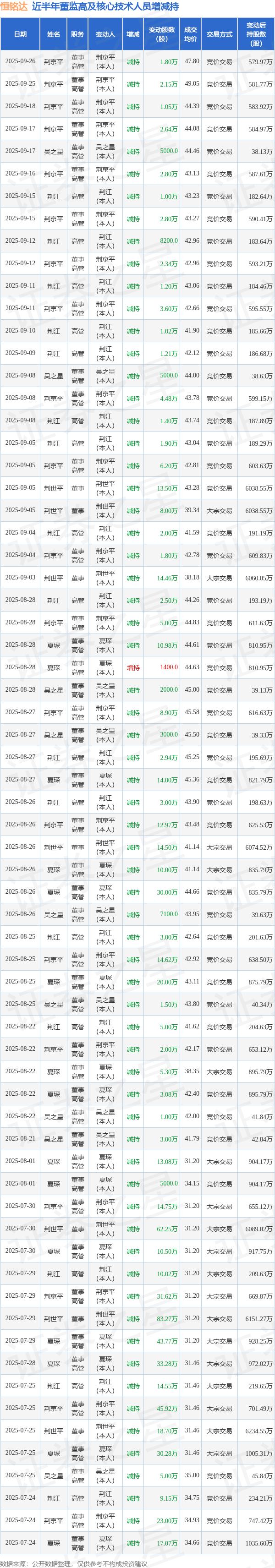 恒铭达近半年内的董监高及核心技术人员增减持详情如下: