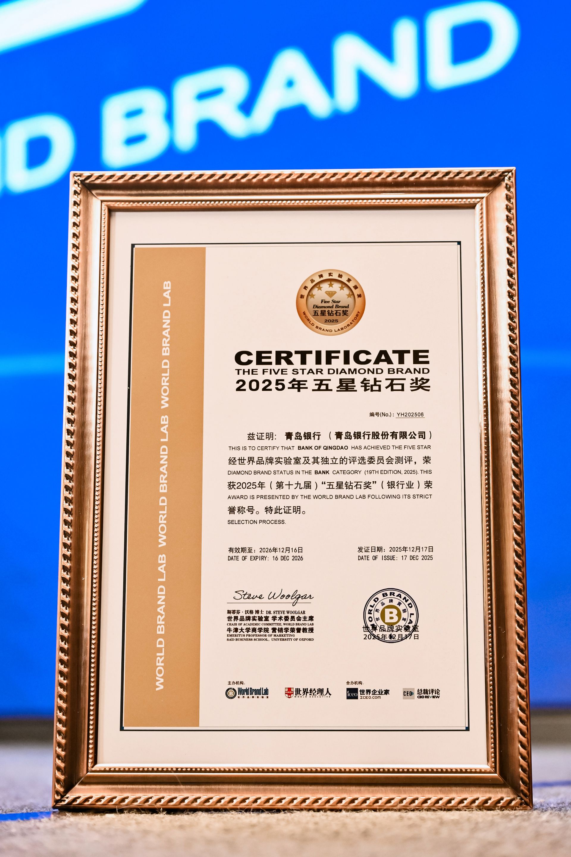 此次再度荣获2025年(第十九届)“五星钻石奖”,无疑是对青岛银行多年优质金融服务的进一步肯定和认可。未来,青岛银行将继续秉承中央金融工作会议和中央经济工作会议要求,以“五篇大文章”为行动纲领,在蓝色经济培育、绿色转型推进、小微企业扶持等领域持续发力,与地方经济社会发展共生共荣,为推动高质量发展贡献坚实而温暖的青银力量。