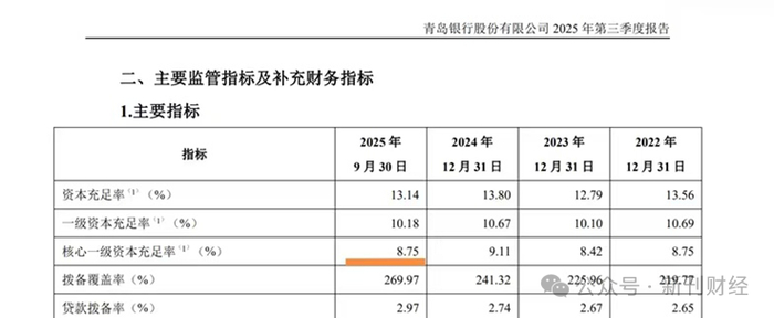 研究近5年青岛银行的财务数据,可以发现清晰的扩张轨迹。2020年末至2025年三季度末,青岛银行贷款规模从2023.58亿元增至3655.96亿元,五年增幅80.66%;风险加权资产从2679.41亿元增至4511.33亿元,增幅68.37%。扩张是需要代价的——信贷规模的快速扩张虽然助力青岛银行业绩增长,但按监管要求需要相应资本支撑,导致资本消耗速度远超内源补充速度。
