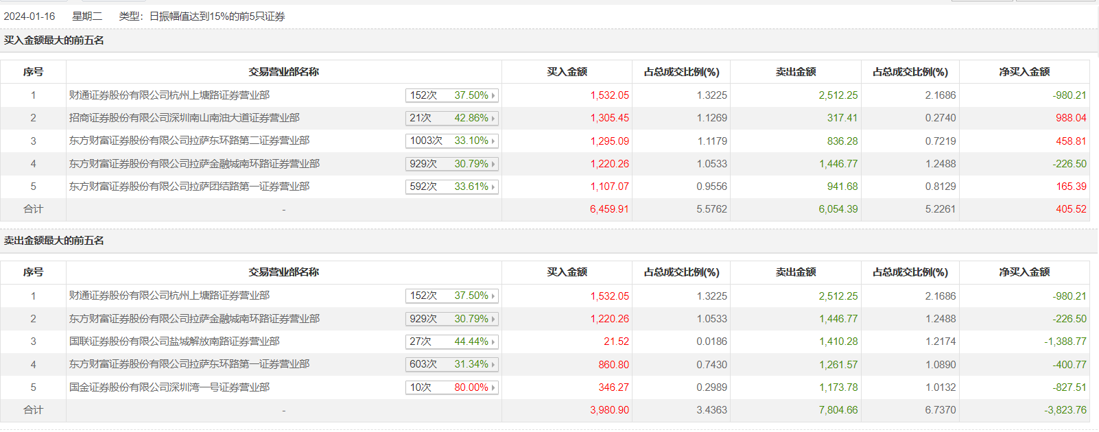 亚世光电1月16日涨停,全天换手率达23.43%,振幅达14.84%。龙虎榜数据显示,营业部席位合计净卖出2211.53万元。其中,财通证券杭州上塘路证券营业部、招商证券深圳南山南油大道证券营业部分别买入1532.05万元、1305.45万元;财通证券杭州上塘路证券营业部、东方财富证券拉萨金融城南环路证券营业部分别卖出2512.25万元、1446.77万元。