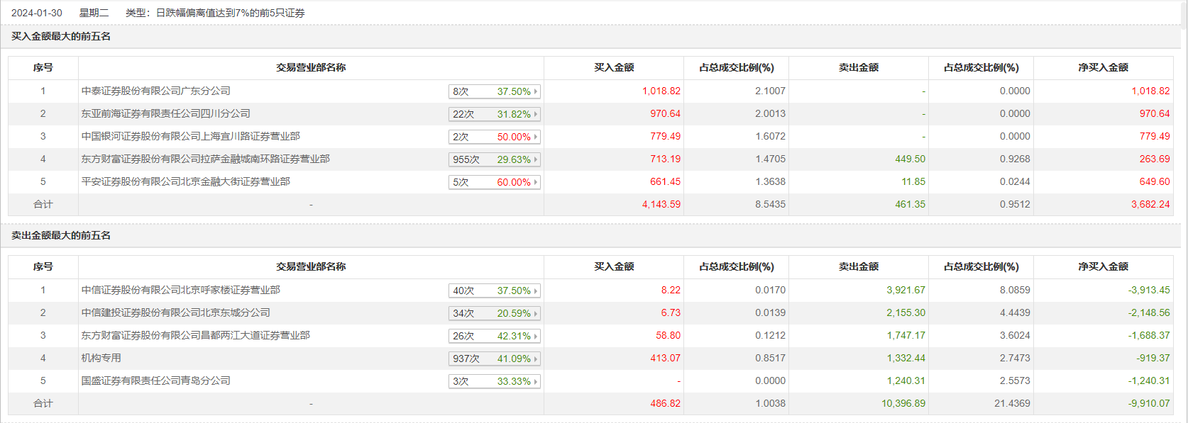 1月30日,亚世光电今日跌停,全天换手率达11.99%,振幅达5.15%。龙虎榜数据显示,营业部席位合计净卖出6227.83万元。其中,机构买入413.07万元,卖出1332.44万元,合计净卖出919.37万元。此外,中信证券北京呼家楼证券营业部、中信建投证券北京东城分公司分别卖出3921.67万元、2155.30万元;中泰证券广东分公司、东亚前海证券四川分公司分别买入1018.82万元、970.64万元。