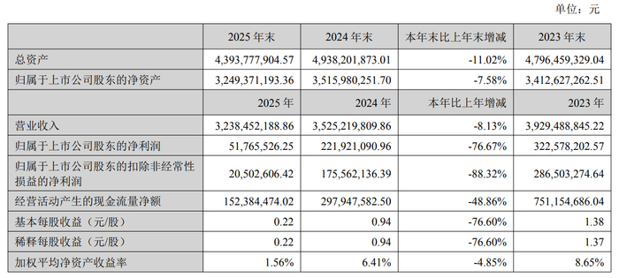 多知3月20日消息,鸿合科技发布2025年全年业绩报告。本报告期实现营业总收入32.38亿元,同比下降8.13%,净利润5176.55万元,同比下降76.67%,基本每股收益为0.22元。