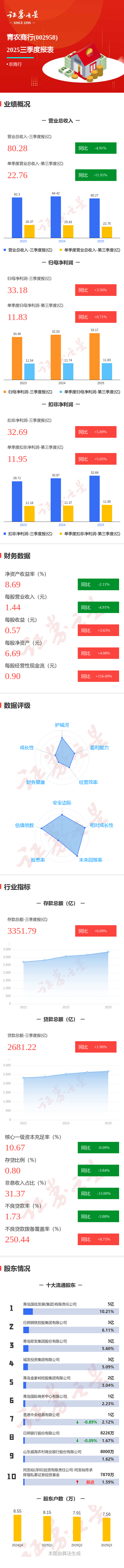 图解青农商行三季报:第三季度单季净利润同比增长0.72%