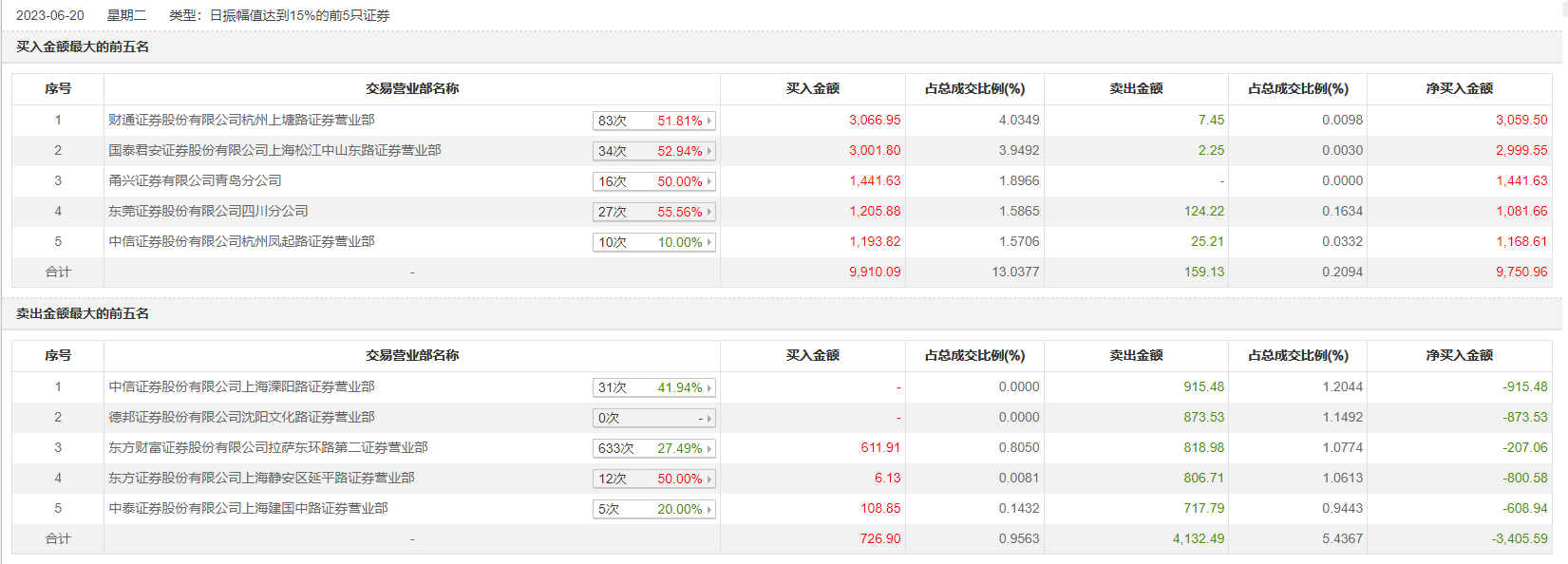 6月20日,五方光电今日涨停,龙虎榜数据显示,上榜营业部席位全天成交1.49亿元,占当日总成交金额比例为19.64%。其中,买入金额为1.06亿元,卖出金额为4291.62万元,合计净买入6345.37万元。