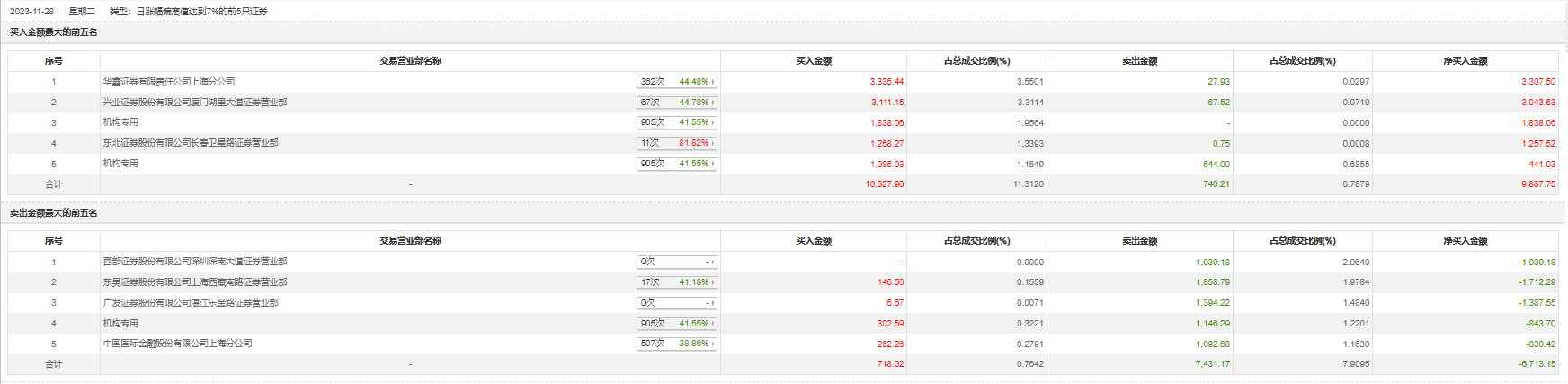 11月28日,五方光电今日涨停,全天换手率达29.74%,振幅达10.63%。龙虎榜数据显示,营业部席位合计净买入3174.6万元。其中,机构买入3225.69万元,卖出1790.29万元,合计净买入1435.39万元。此外,华鑫证券上海分公司、兴业证券厦门湖里大道证券营业部分别买入3335.44万元、3111.15万元;西部证券深圳深南大道证券营业部、东吴证券上海西藏南路证券营业部分别卖出1939.18万元、1858.79万元。