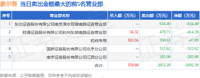 10月27日豪尔赛(002963)龙虎榜数据:机构净买入419.16万元