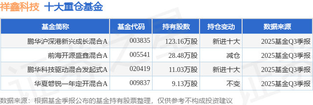 重仓祥鑫科技的公募基金请见下表: