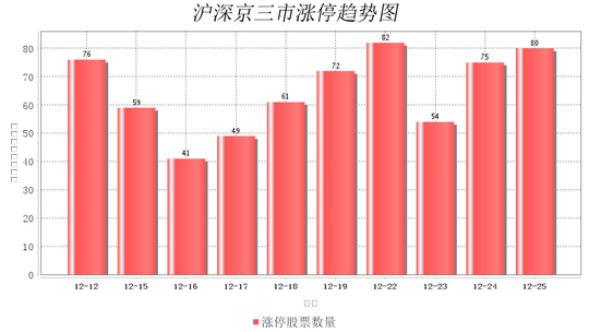 今日沪深京三市一共80支股票涨停,较上一个交易的75支增加5支。