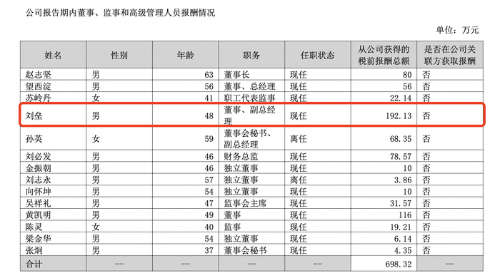 薪酬方面,2024年财报显示,赵志坚的年薪为80万元;而刘垒的年薪为192.13万元,位居董监高薪酬榜首。