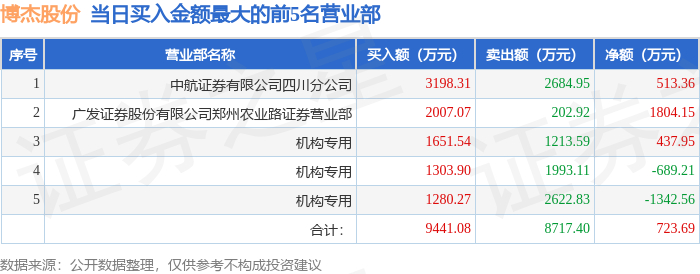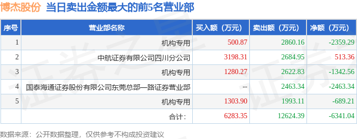 9月19日博杰股份(002975)龙虎榜数据:机构净卖出3953.1万元