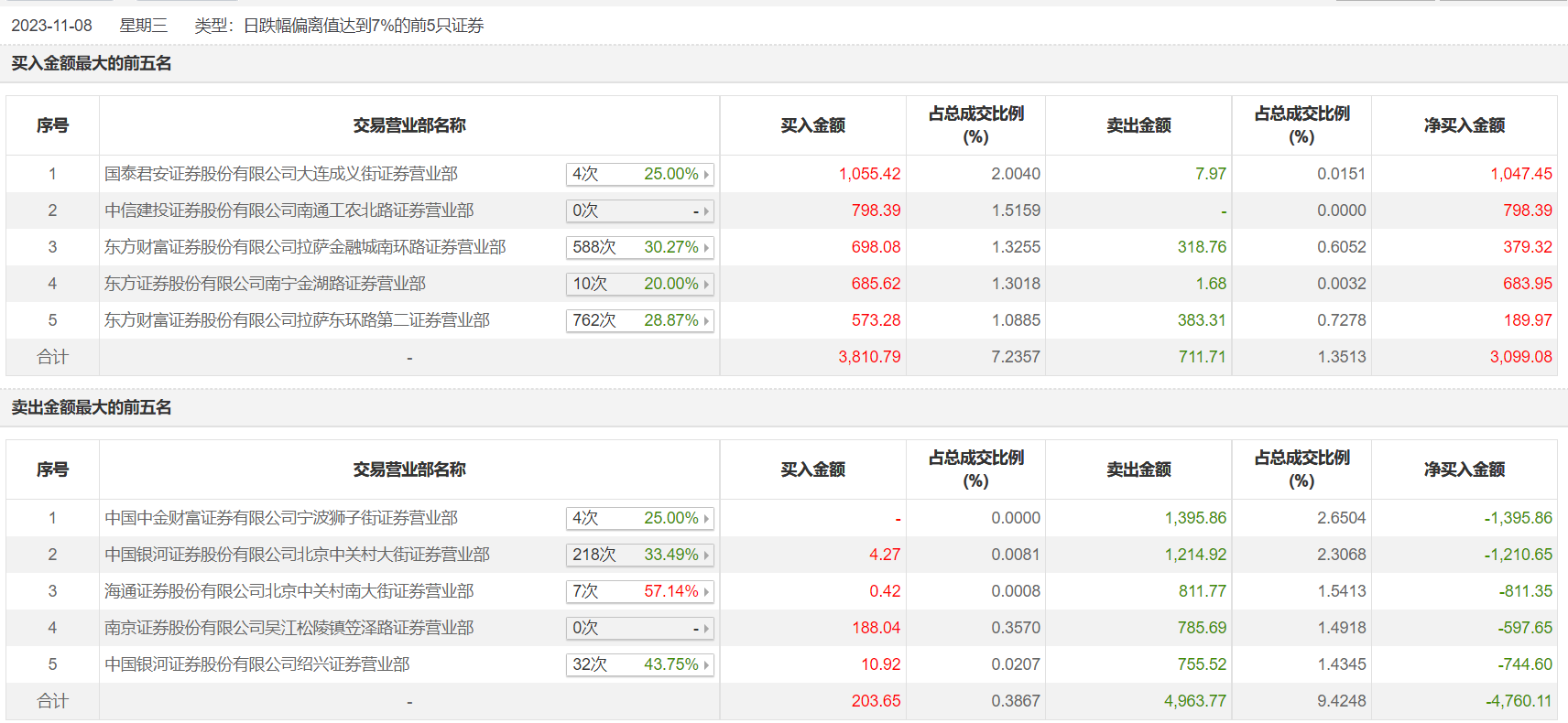朝阳科技11月8日跌停,龙虎榜数据显示,上榜营业部席位全天成交9689.92万元,占当日总成交金额比例为18.4%。其中,买入金额为4014.45万元,卖出金额为5675.48万元,合计净卖出1661.03万元。