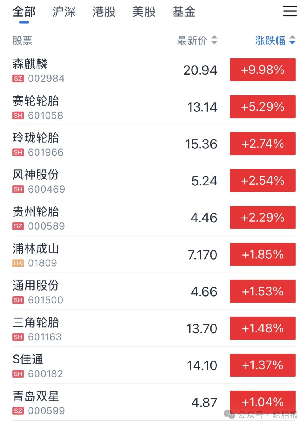 轮胎行业狂飙!森麒麟涨停!赛轮、玲珑、风神、贵州、成山、通用、三角、佳通、双星…轮胎板块全线飘红!