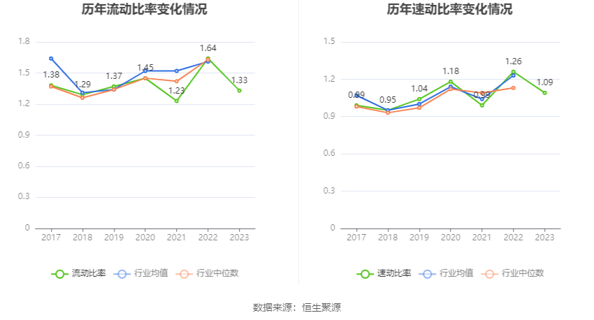 2023年,公司流动比率为1.33,速动比率为1.09。