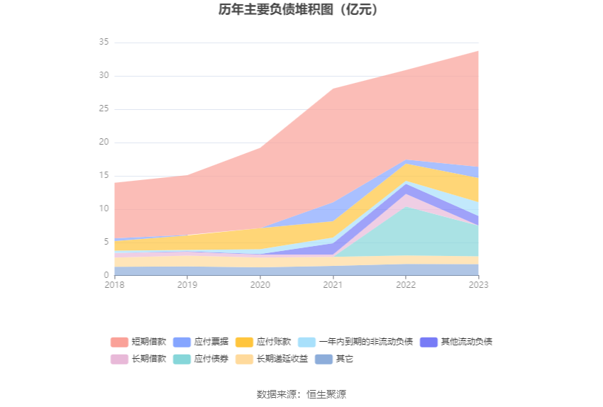 负债重大变化方面,截至2023年年末,公司短期借款较上年末增加29.65%,占公司总资产比重上升4.01个百分点;应付债券较上年末减少37.78%,占公司总资产比重下降6.20个百分点;一年内到期的非流动负债较上年末增加354.22%,占公司总资产比重上升2.66个百分点;应付票据较上年末增加178.20%,占公司总资产比重上升1.68个百分点。