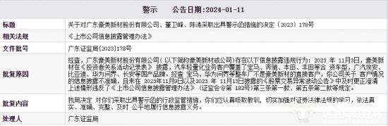 同年1月12日,豪美新材发公告称,公司将“提高信息披露质量,坚决杜绝此类事件的再次发生。”