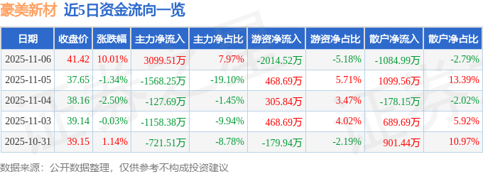 11月6日的资金流向数据方面,主力资金净流入3099.51万元,占总成交额7.97%,游资资金净流出2014.52万元,占总成交额5.18%,散户资金净流出1084.99万元,占总成交额2.79%。