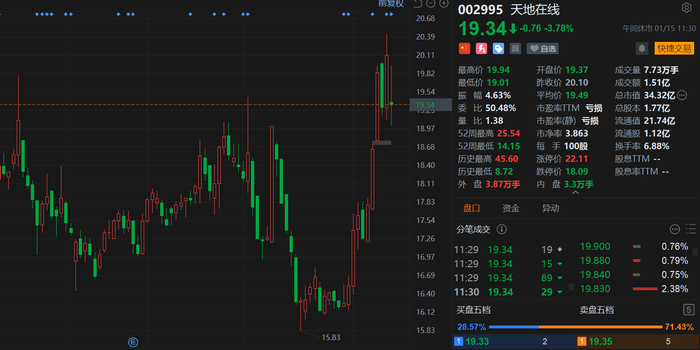 A股异动丨天地在线跌近4% 子公司遭诈骗 近4000万元未追回