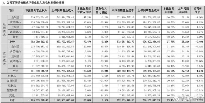 核心大单品“劲仔小鱼”是公司增长的主要动力,今年上半年,作为营收“压舱石”的鱼制品实现收入7.57亿元,同比增长7.61%,收入占比约为67.32%。