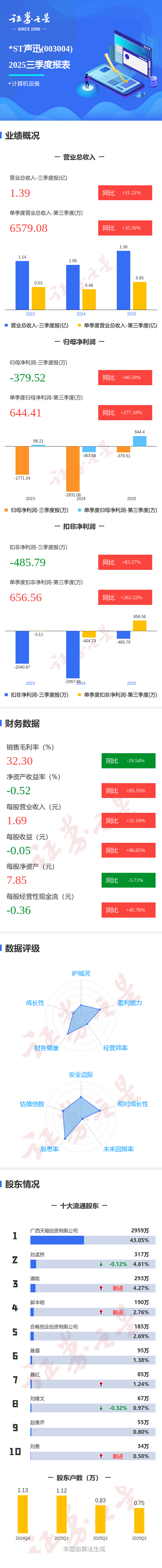 图解*ST声迅三季报:第三季度单季净利润同比增长277.19%