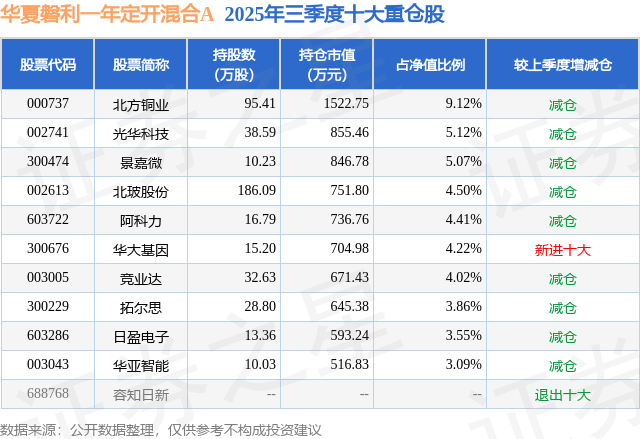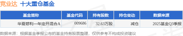 根据2025基金Q3季报公募基金重仓股数据,重仓该股的公募基金共1家,其中持有数量最多的公募基金为华夏基金的华夏磐利一年定开混合A。华夏磐利一年定开混合A目前规模为1.48亿元,最新净值2.0111(1月9日),较上一交易日上涨1.52%,近一年上涨44.34%。该公募基金现任基金经理为张城源。张城源在任的基金产品包括:华夏磐泰混合(LOF)A,管理时间为2016年12月26日至今,期间收益率为82.62%;华夏磐锐一年定开混合A,管理时间为2020年12月22日至今,期间收益率为85.64%;华夏磐益一年定开混合,管理时间为2021年1月26日至今,期间收益率为57.82%。