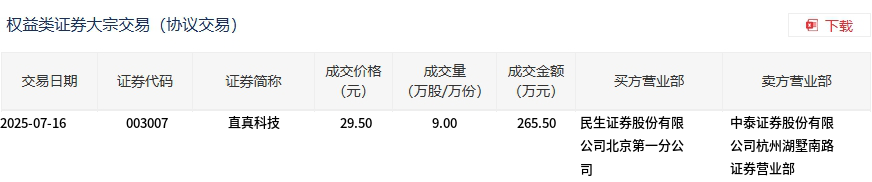 直真科技今日大宗交易折价成交9万股,成交额265.5万元
