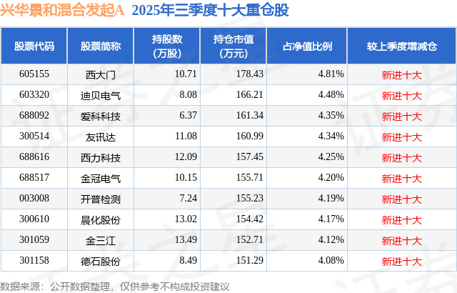 根据2025基金Q3季报公募基金重仓股数据,重仓该股的公募基金共1家,其中持有数量最多的公募基金为兴华基金的兴华景和混合发起A。兴华景和混合发起A目前规模为0.25亿元,最新净值1.2183(11月24日),较上一交易日上涨1.52%。该公募基金现任基金经理为崔涛 黄生鹏。崔涛在任的基金产品包括:兴华兴利债券A,管理时间为2024年11月14日至今,期间收益率为9.13%;兴华景成混合A,管理时间为2025年7月9日至今,期间收益率为15.73%。