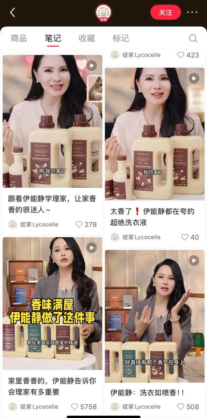 不难发现,在不少内容种草平台上,绽家通过伊能静、章小蕙、董洁等以生活达人、优雅女性人设闻名的达人,以“高端生活美学”为锚点,强化的“高端”“香氛”标签,借助高质感的视觉语言与生活方式展现进行内容营销,进一步为品牌造势,强化用户心智,引导转化。