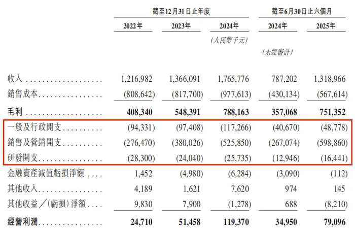 然而,营销投入持续加码正对若羽臣利润形成显著挤压。数据显示,其销售费用从2022年的2.76亿元激增至2024年的5.26亿元,2025年上半年更同比暴涨124.23%至5.99亿元,营销投入已成“刚性支出”难以削减。