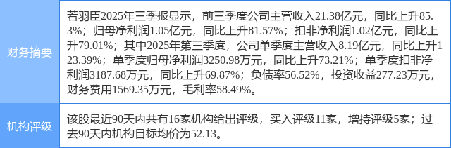 2025年11月2日,东吴证券研究员吴劲草,郗越发布了对若羽臣的研报《2025年 三 季 报 点 评:25Q3自 有 品 牌 同 增345%,看好多品牌快速放量带动业绩高增》,该研报对若羽臣给出“买入”评级。证券之星数据中心根据近三年发布的研报数据计算,该研报作者对此股的盈利预测准确度为78.76%。