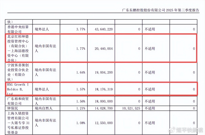 红杉资本接连减持。2024年以来,东鹏控股遭遇股东减持,2024年5月,股东HSGHoldcoB、北京红杉坤德投资管理中心(有限合伙)-上海喆德投资中心(有限合伙)披露拟减持公司股份不超过3%,不过最终没有实施减持。