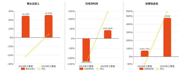 公司营业总收入为10.55亿元。归母净利润为1037.68万元,在已披露的同业公司中排名第21。经营活动现金净流入为1.53亿元。