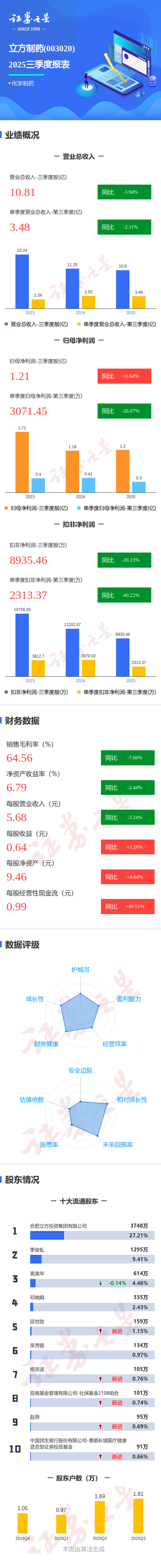 图解立方制药三季报:第三季度单季净利润同比下降26.08%