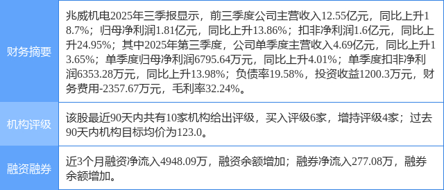 2025年11月21日,华安证券研究员张志邦,刘千琳发布了对兆威机电的研报《Q3业绩符合预期,机器人灵巧手巩固优势》,该研报对兆威机电给出“买入”评级。研报中预计公司2025-2027年归母净利润为2.65/3.23/3.67亿元(25-27年原值2.82/3.41/3.97亿元),EPS为1.10/1.34/1.52元/股,对应PE为95/78/69倍,维持“买入”评级。证券之星数据中心根据近三年发布的研报数据计算,该研报作者对此股的盈利预测准确度为74.99%。