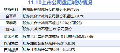 11月10日上市公司减持汇总:联泓新科等7股拟减持(表)