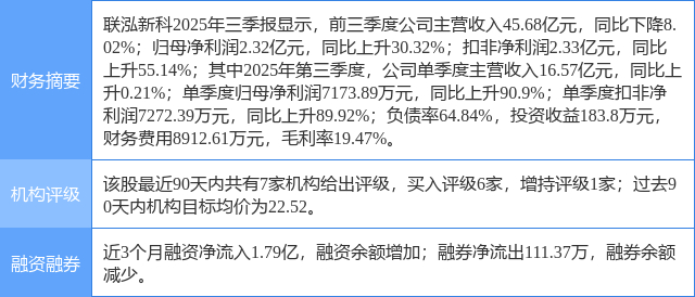 2025年10月15日,国金证券研究员姚遥,张嘉文发布了对联泓新科的研报《业绩符合预期,在建项目稳步推进》,该研报对联泓新科给出“买入”评级。证券之星数据中心根据近三年发布的研报数据计算,该研报作者对此股的盈利预测准确度为29.36%。