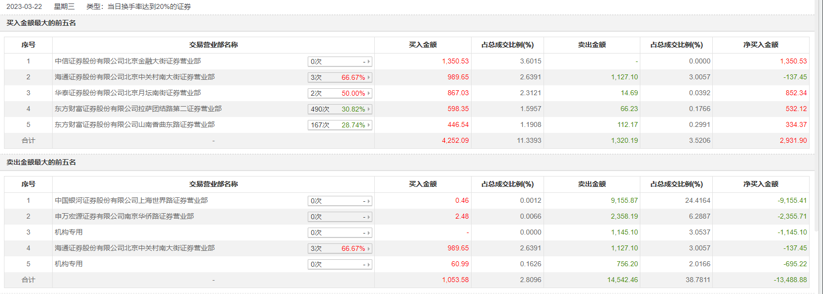 具体来看,机构买入60.99万元,卖出1901.3万元,合计净卖出1840.32万元。此外,中国银河证券上海世界路证券营业部、申万宏源证券有限公司南京华侨路证券营业部分别卖出9155.87万元、2358.19万元;中信证券北京金融大街证券营业部、海通证券北京中关村南大街证券营业部分别买入1350.53万元、989.65万元。